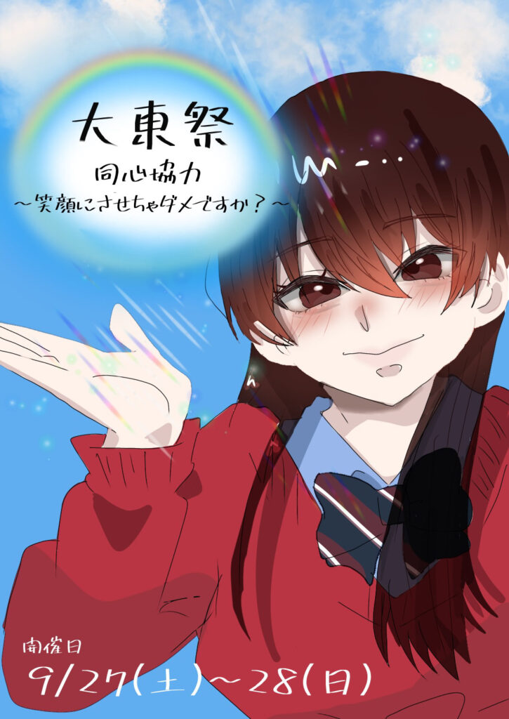 これまで生徒全員で同心協力し、より良い大東祭をつくり上げようと準備を重ねてきました。本日が皆さまにとって笑顔あふれる思い出のに日なるよう頑張っていきましょう。