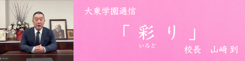 山﨑校長の学園通信「彩り」より抜粋と、生徒会長の話をお伝えします。