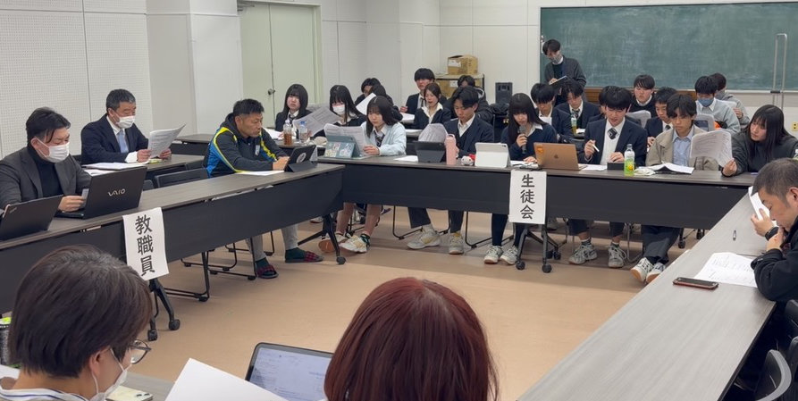 学校生活をよりよくしていくために、生徒・保護者(東和会)・教職員が対等な立場で話し合い、お互いの合意をつくっていくことを目的としています。 今回の協議事項は「規定改定について」です。 大東祭(文化祭)のバザーの売り上げ金が生徒会へ寄付されました。 校庭には梅の花が咲き始めています。