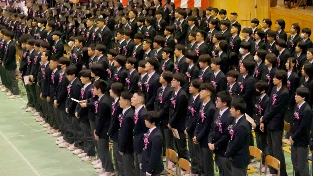 「3年前、入学式で皆さんをお迎えしたときと同じように、今日も“対面式”という形で皆さんを送り出します。